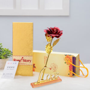 Be the first to review “Artificial Red Rose with Love Stand and Gold-Plated Leaf”