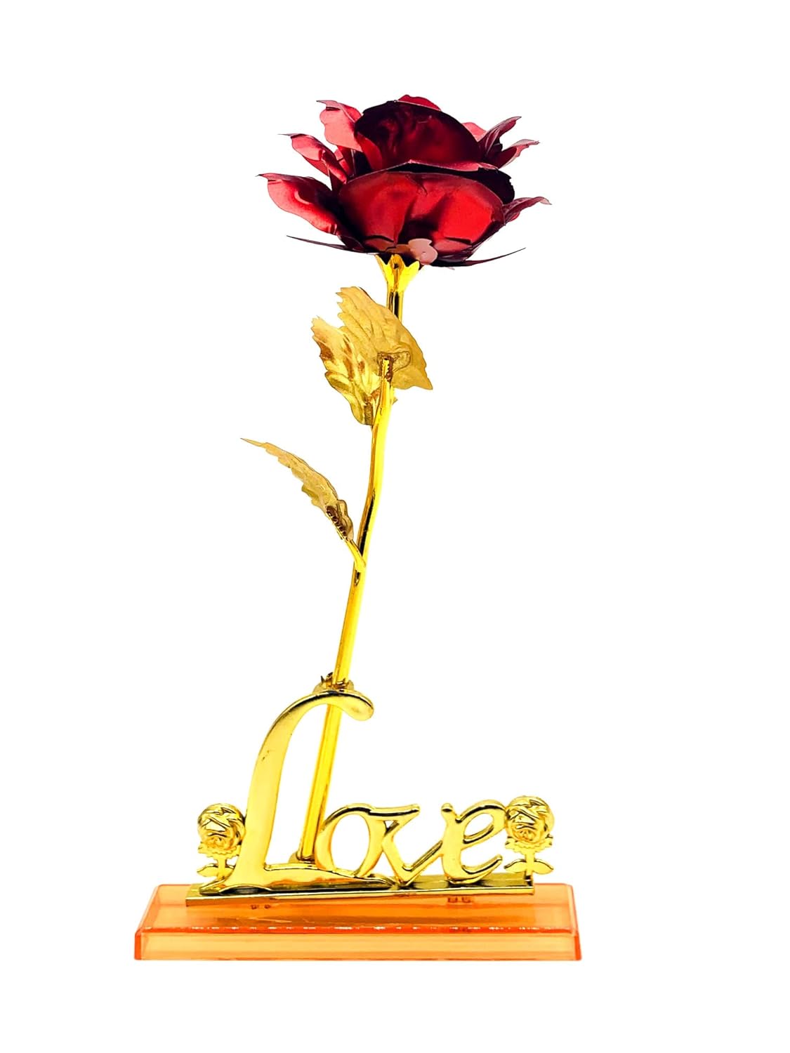 Celebrate love in the most timeless way with the Artificial Red Rose with Love Stand and Gold-Plated Leaf. This elegant romantic gift is the perfect symbol of affection, making it a beautiful surprise for your girlfriend, boyfriend, husband, wife, or fiancée.